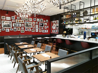 四条烏丸のホテルの一角に進々堂が提案する新たなブラッスリーが誕生。パンとワインとチーズを楽しめるレストランにショップも併設している。